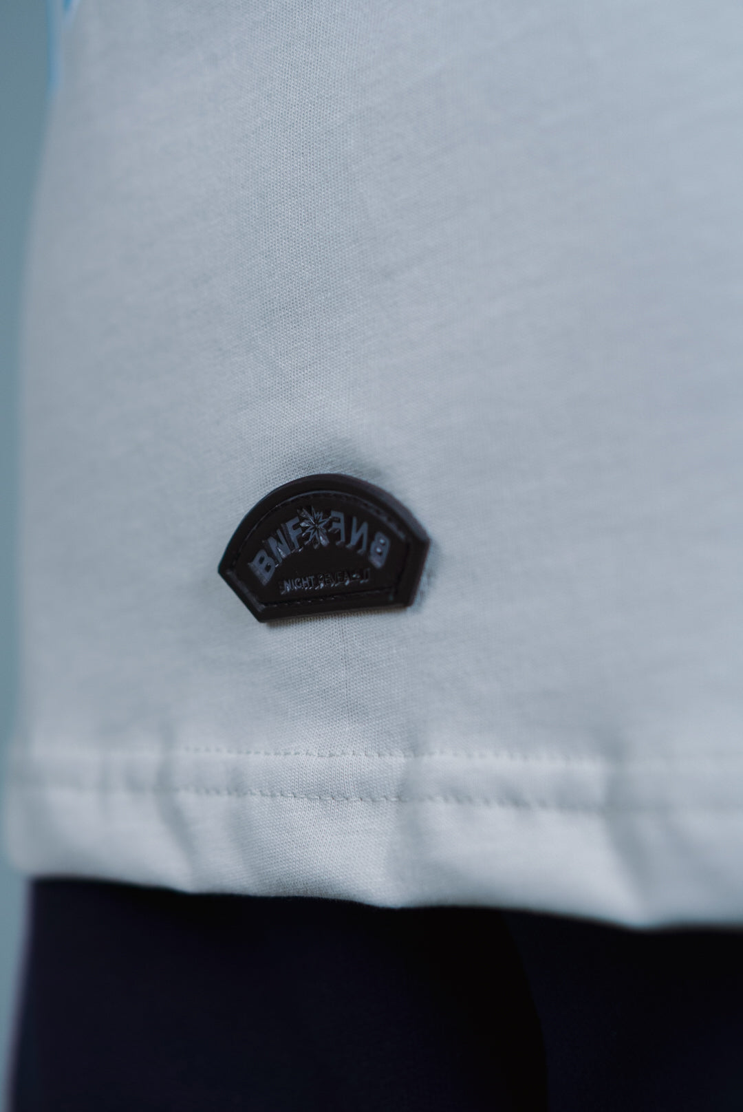 Su diseño incluye estampados en serigrafía de acabado plano y alta densidad, logrando un contraste visual moderno y atractivo. Ideal para cualquier ocasión casual, esta camiseta destaca por su suavidad, resistencia y confort, convirtiéndose en una elección perfecta para complementar tu guardarropa con un toque elegante y relajado.