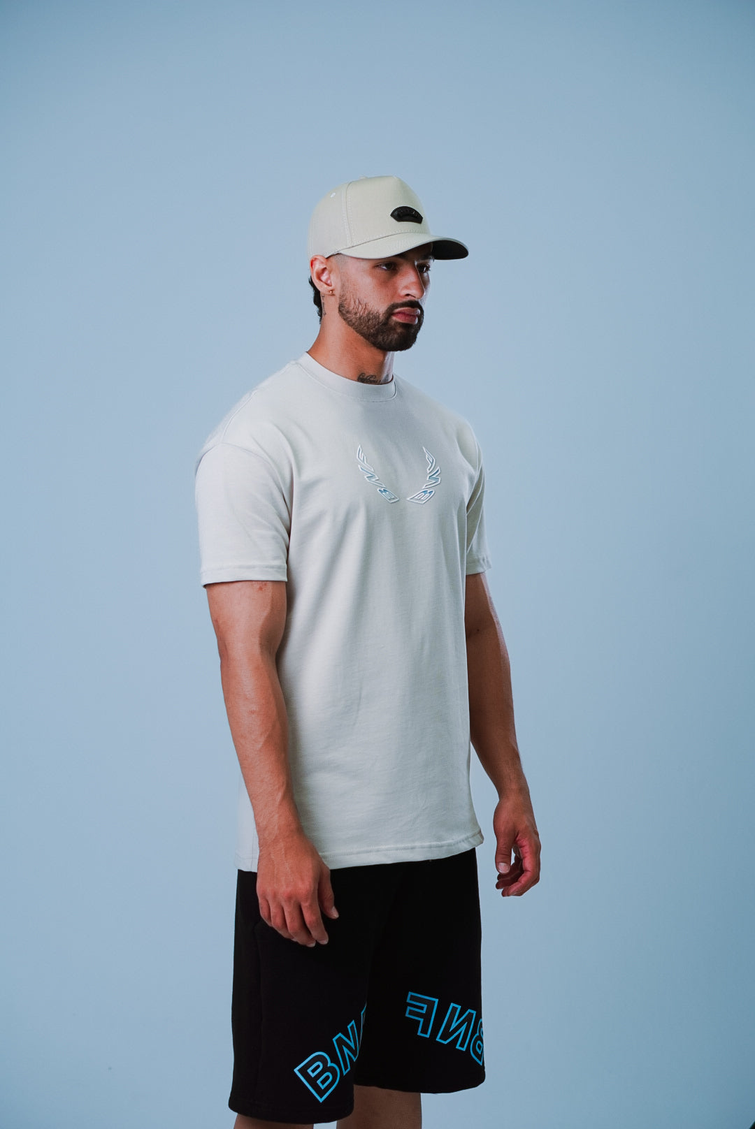 Esta camiseta en tono arena está confeccionada con tela 100% algodón de 250 gramos, garantizando una textura suave, resistente y cómoda para el uso diario.